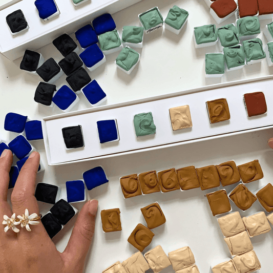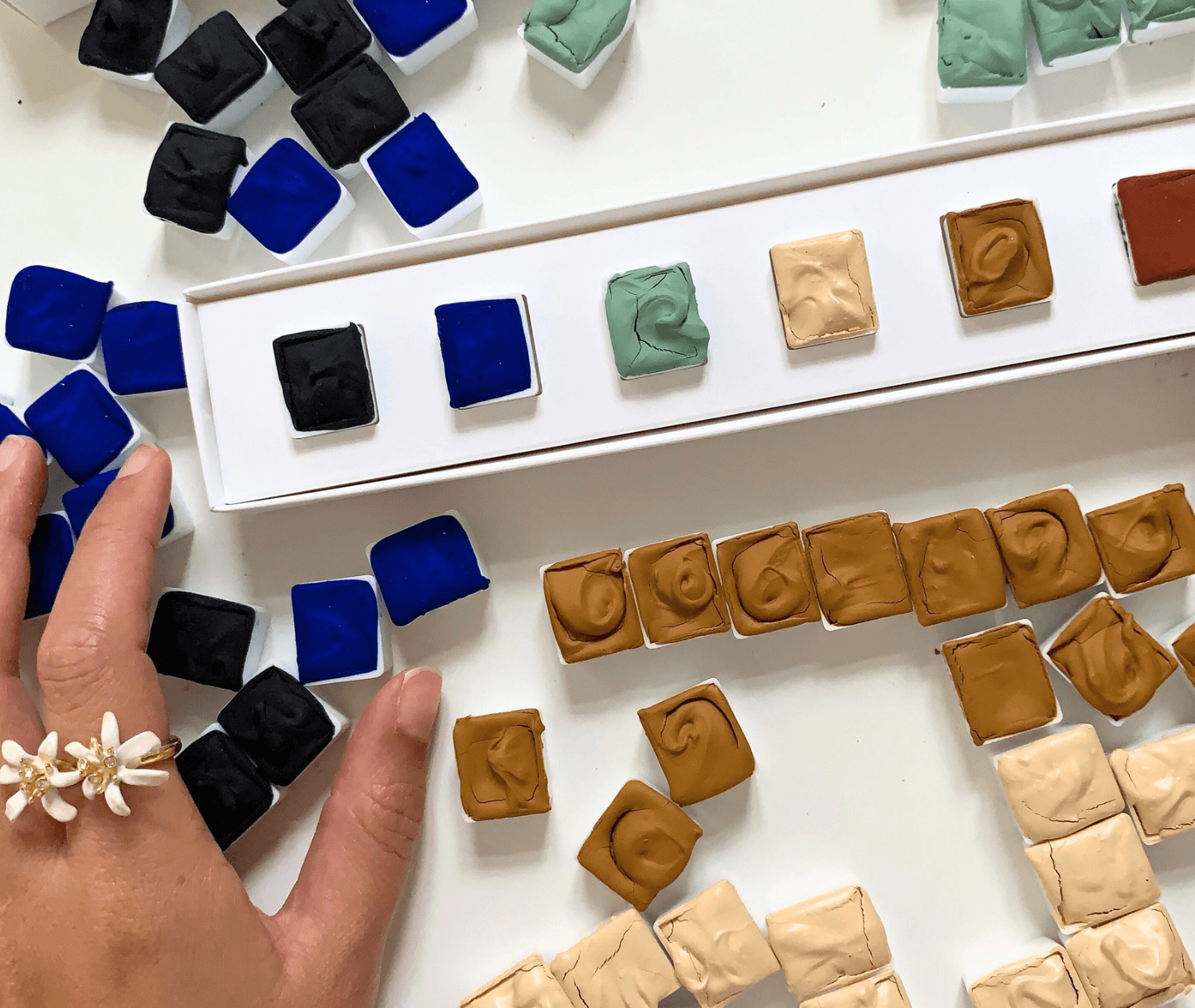 "Je crée des couleurs pétillantes de bonheur pour que vous ne puissiez pas résister à l'envie de les utiliser et à ajouter cette touche de bien-être coloré à votre quotidien. Plongez dans l'aquarelle, le yoga de l'esprit !" -Catherine, fondatrice de La Nouvelle Vague Couleurs